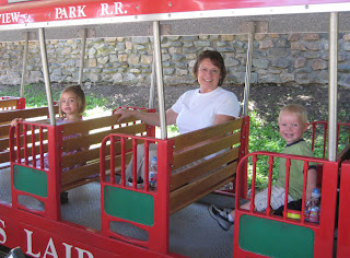 After Reese had speech therapy this morning, we drove to Belleview park. We hadn't been there before and I had heard that it was shaded, but the play area really wasn't. However, the train and petting zoo area was shaded and it was quite pleasant. The kids enjoyed the very short train ride-thank goodness it only cost $1 per person.